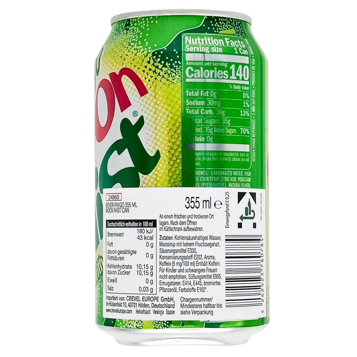 Moon Mist gehört zu den bekanntesten Sorten der amerikanischen Kultmarke Faygo aus Detroit. Besonders in der Popkultur und unter Soda-Fans genießt die Marke einen legendären Ruf. Wer US-Snacks liebt, kommt an dieser Limonade kaum vorbei.