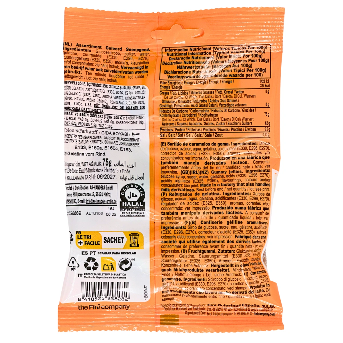 Hersteller: Fini Golosinas España, S.L.U. Carretera del León, Km 0.6 03293 Elche (Alicante), Spanien