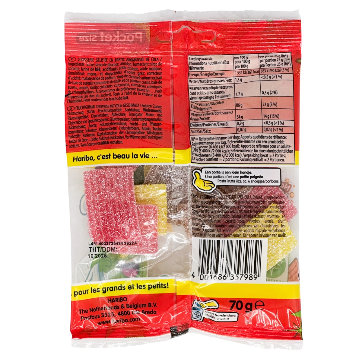 Die Konsistenz ist weich‑gummiartig, dennoch mit dem typischen Biss, den Haribo‑Freunde kennen. Ideal zum Teilen, als Snack oder einfach, wenn dir nach etwas Fruchtigem mit Kick ist.