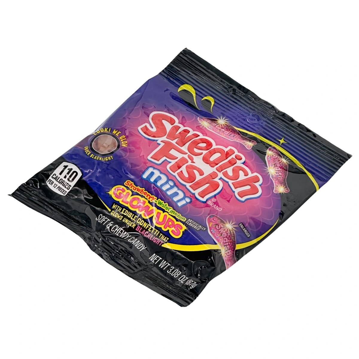 Du dachtest, nur Einhörner glitzern? Falsch gedacht! Die Swedish Fish Glow Ups bringen Farbe ins Dunkel – im wahrsten Sinne. Diese leuchtenden Kaubonbons kombinieren den typischen Swedish-Fish-Charme mit einem verrückten Gimmick: Sie enthalten essbares Konfetti, das unter Schwarzlicht fluoresziert! 🤯 Geschmacklich setzt diese Limited Edition auf einen frechen Duo-Style: Erdbeere trifft Wassermelone – fruchtig, frisch und genau das Richtige für alle, die lieber laut statt langweilig naschen. Die Konsistenz? Klassisch zäh und chewy, so wie du es von Swedish Fish kennst und liebst. Und ja, sie sehen so wild aus, wie sie klingen. Ein Must-have für Partys, Neon-Nächte oder einfach für alle, die sich mal wieder wie ein knallbunter Teenie fühlen wollen!